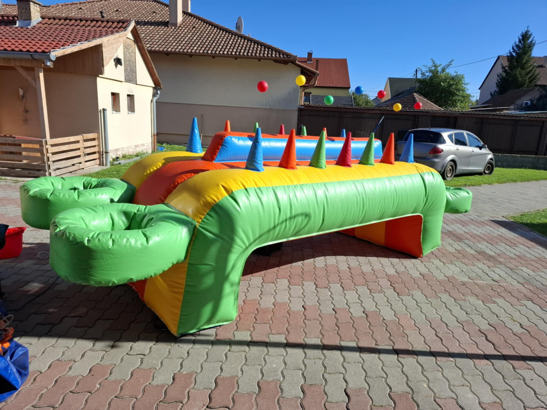 A labdazsonglőr egy látványos, levegővel működő interaktív játék, ahol a felfújt szerkezetben a könnyű labdák légáramlat segítségével lebegnek – a játékosok feladata ezeket ügyesen egyik tölcsérből a másikba irányítani, ami szórakoztató és játékos kihívást jelent minden korosztálynak.
