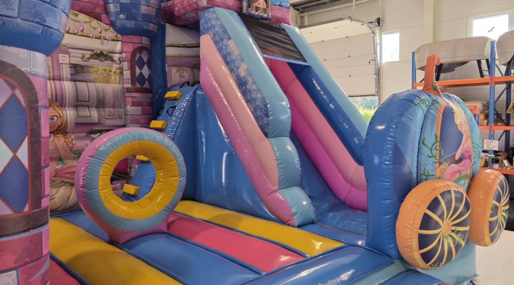 Ez a hercegnős ugrálóvár igazi tündérmese, ahol csillogó színek, elegáns tornyok és bájos részletek várják a kis Hercegnőket és Hercegeket. Itt minden ugrás egy varázslatos pillanat, minden nevetés egy mesébe illő kaland – ahol a képzelet uralkodik, és mindenki királynőnek és királynak érezheti magát.